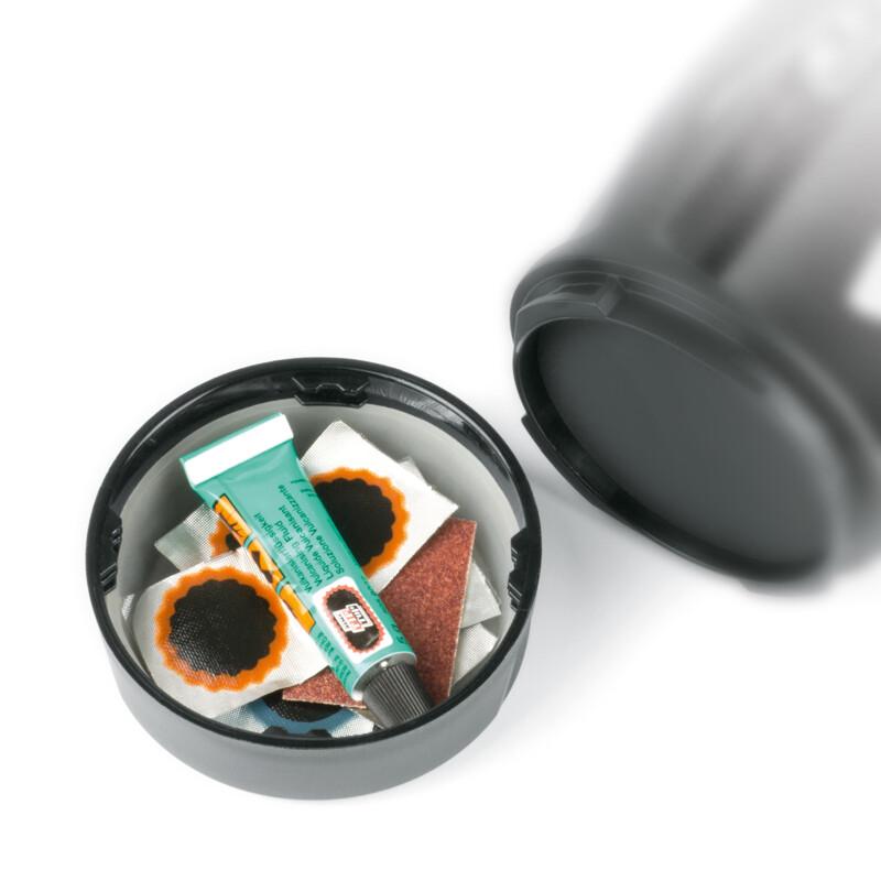 Mit doppeltem Boden: Der SKS SPACECAGE ist nicht nur ein Fahrrad Flaschenhalter, der die Trinkflasche fest und sicher hält. Mit einem kaum erkennbaren Staufach an der Unterseite bietet er ein praktisches Feature. Im Fach des Flaschenhalters sind Flickzeug, Schlüssel oder Kleingeld sicher aufgehoben, ein Bajonettverschluss garantiert ein unbeabsichtigtes Öffnen. Der Flaschenhalter besteht aus leichtem, hochfestem Kunststoff und ist mit dem bewährten verstellbaren Fanghaken ausgestattet.