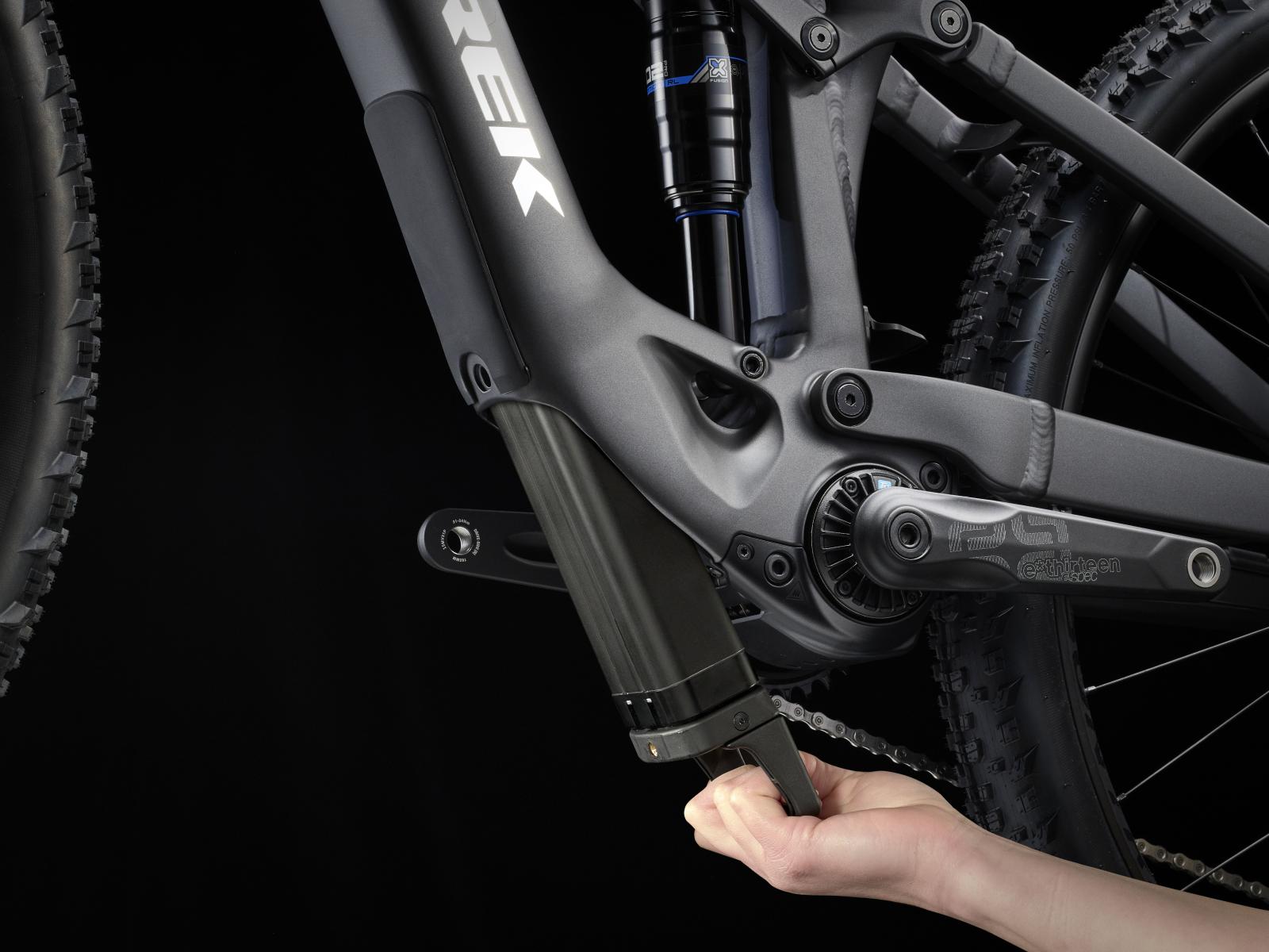 - Für ausgedehntere Abenteuer lässt sich ein Range Extender Akku schnell und einfach in den Flaschenhalter einsetzen.