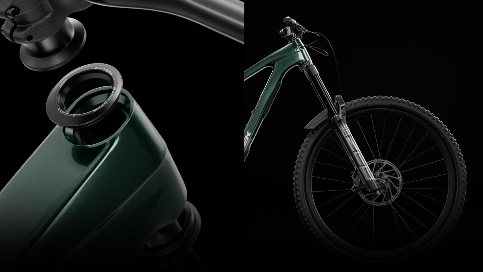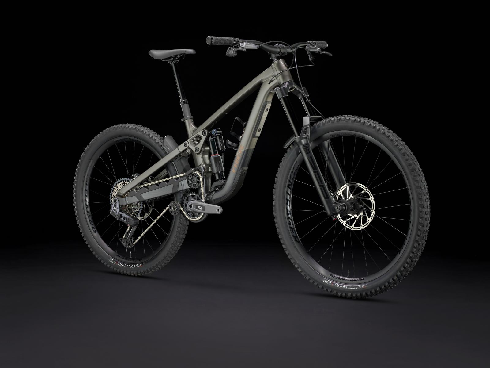 Einen Rahmen aus Alpha Platinum Aluminium mit High-Pivot-Fahrwerk und Umlenkrolle sowie ein Rahmenstaufach. Eine RockShox ZEB Select+ Gabel mit 170 mm Federweg, DebonAir Federung und Charger 3 RC2 Dämpfung und einen RockShox Vivid Select+ Hinterbaudämpfer mit ebenfalls 170 mm Hub. Außerdem die drahtlose SRAM GX AXS Transmission mit breiter Übersetzung für knackige Anstiege, eine Bontrager Line Variosattelstütze und eine Mullet-Konfiguration (29" vorn, 27,5" hinten) mit Bontrager Line Comp 30 Tubeless-Ready-Laufrädern samt Rapid Drive Nabe.