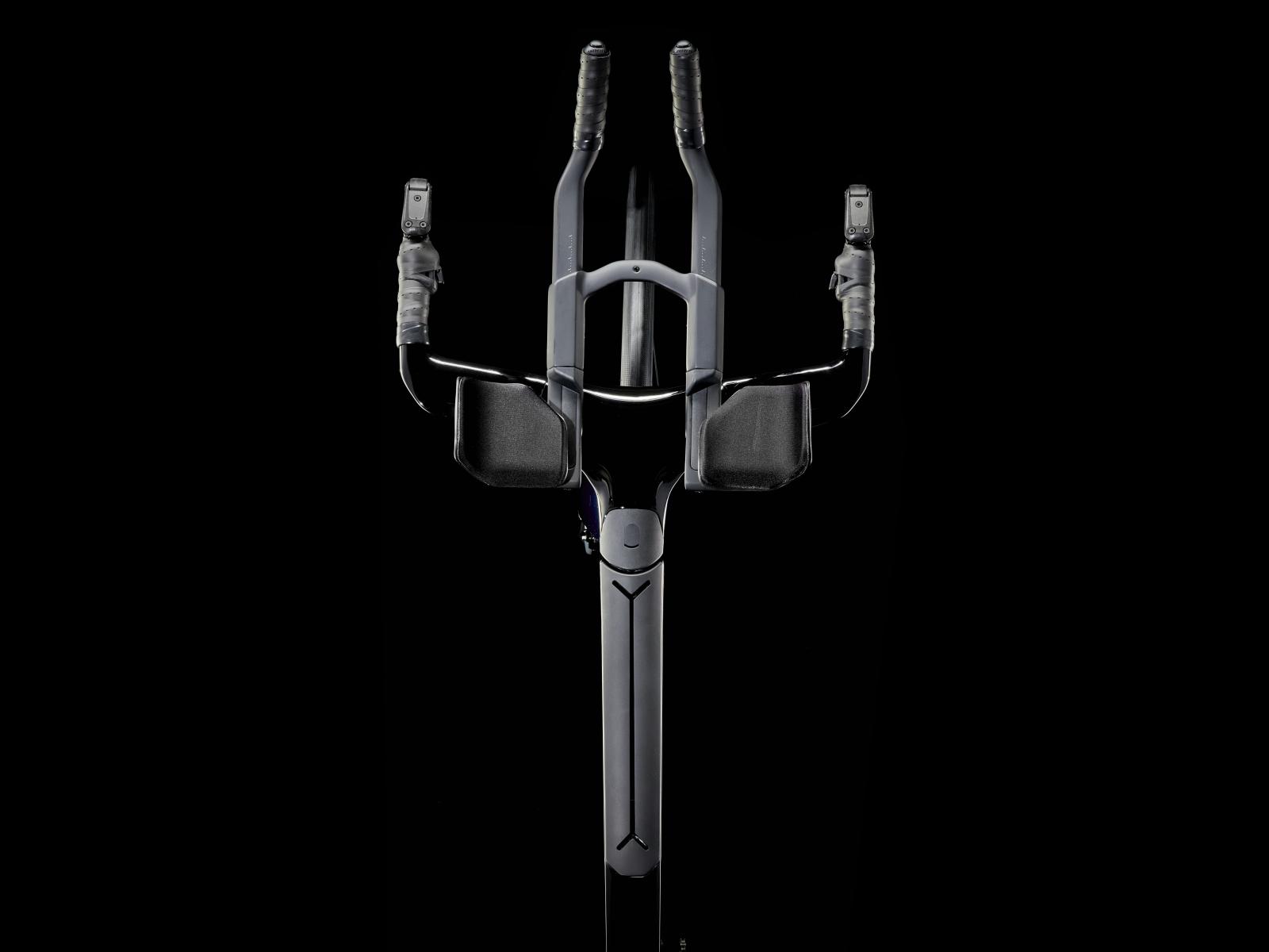 Einen ultraleichten Rahmen aus 800 Series OCLV Carbon, windschnittige Rohre mit Kammtail Virtual Foil-Profil (KVF), eine Speed Concept-Carbongabel mit aerodynamischem Profil, vibrationsdämpfendes IsoSpeed, integrierte Aufbewahrungslösungen für Verpflegung, Flüssigkeit und Pannenkit, einen drahtlosen, elektronischen SRAM Force AXS D2 12fach-Antrieb mit SRAM AXS Clics-Schalthebeln, einen SRAM Force AXS-Powermeter, einen vollständig integrierten Lenker samt Vorbau, einen triathlonspezifischen Bontrager Hilo Comp-Sattel für eine aggressive Aero-Sitzposition, Scheibenbremsen für zuverlässige Bremsleistung und Bontrager Aeolus Pro 51-