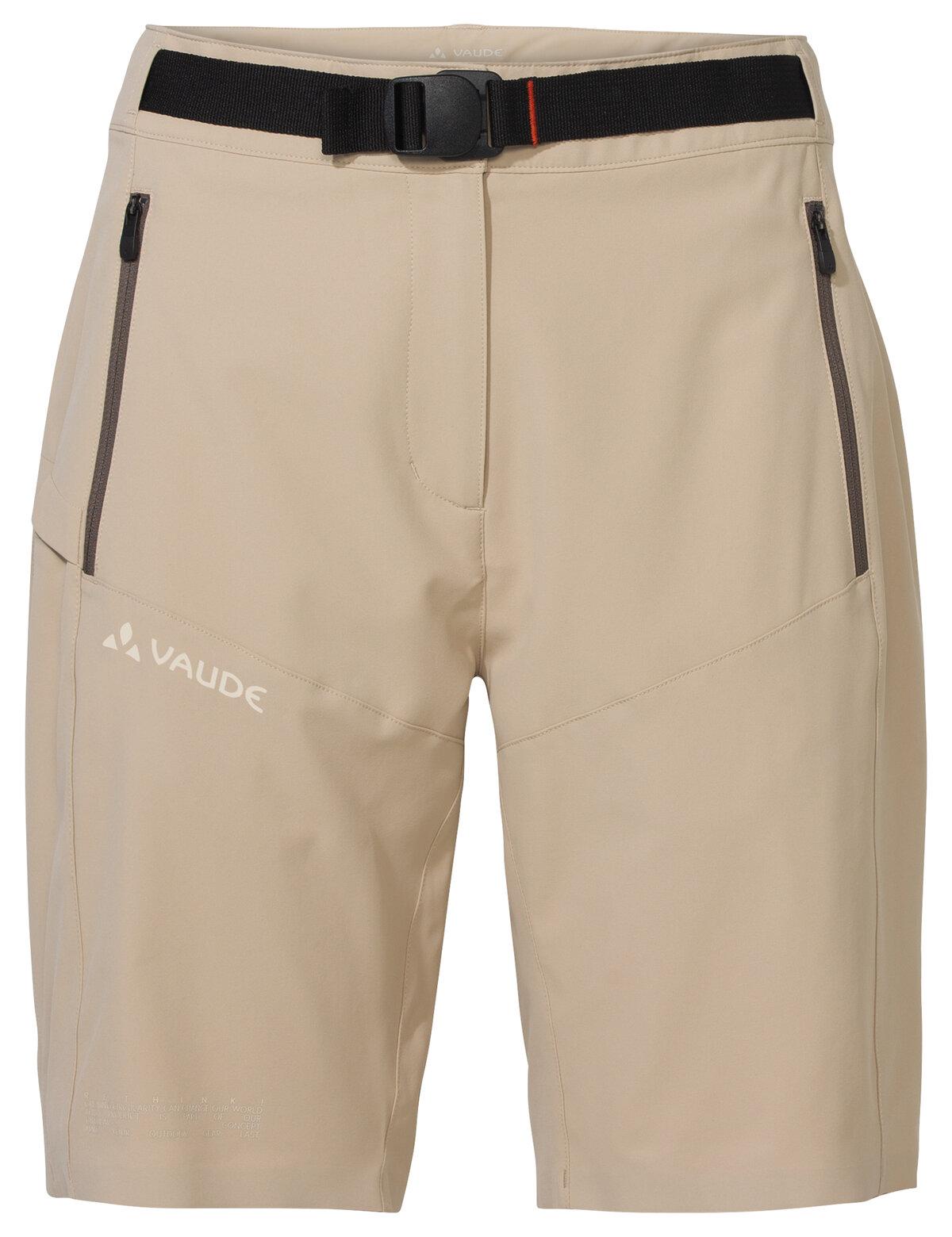 Leichte und sportliche Damen Outdoorshorts, die Teil des VAUDE Kreislaufkonzepts sind #strapazierfähig und leicht reparierbar #fester Bund mit integriertem Gürtel #Hauptmaterial aus recyceltem Polyester hergestellt
