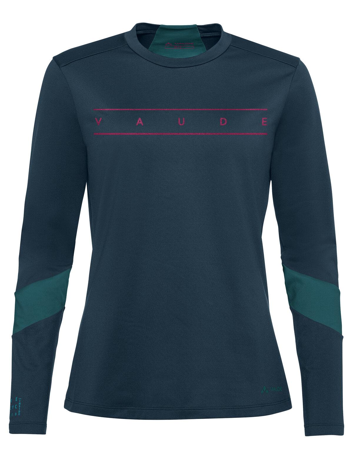 Vielseitiges Damen Langarm Radtrikot für VAUDE Fans #elastisches Logo Shirt mit raffinierten Details #atmungsaktiv und schnelltrocknend #klimaneutral, überwiegend aus recyceltem Material hergestellt